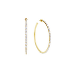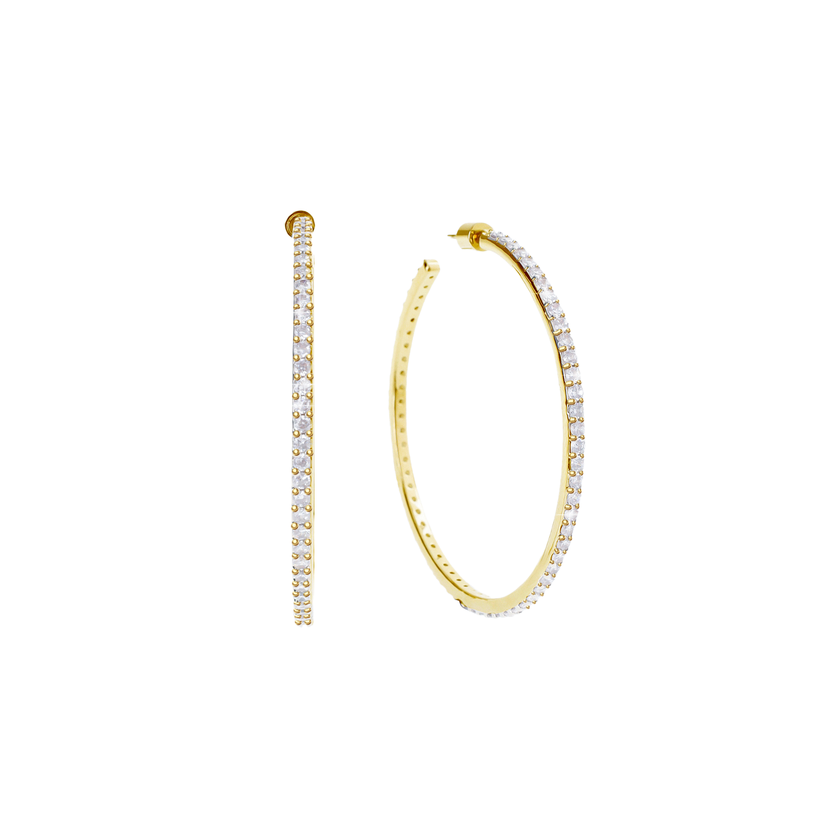 Elevate your look with these elegant Veda Genuine   CZ Goldtone Hoop Earrings. Made with high quality CZ stones, these earrings add a touch of luxury to any outfit. The 2" size is perfect for both everyday wear and special occasions. Sparkle and shine with these stunning hoops.