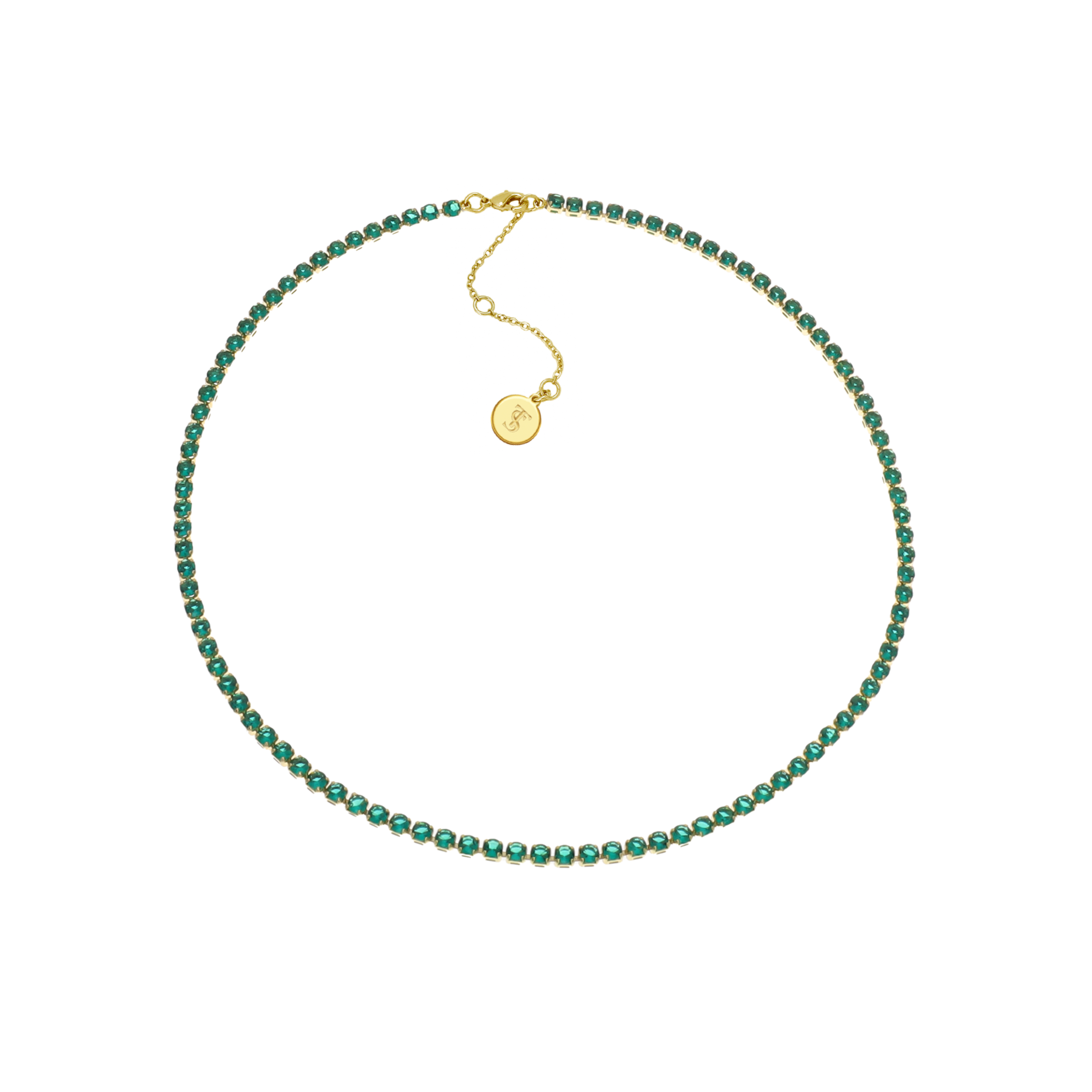 14.25" 3mm CZ Emerald Goldtone Tennis Necklace