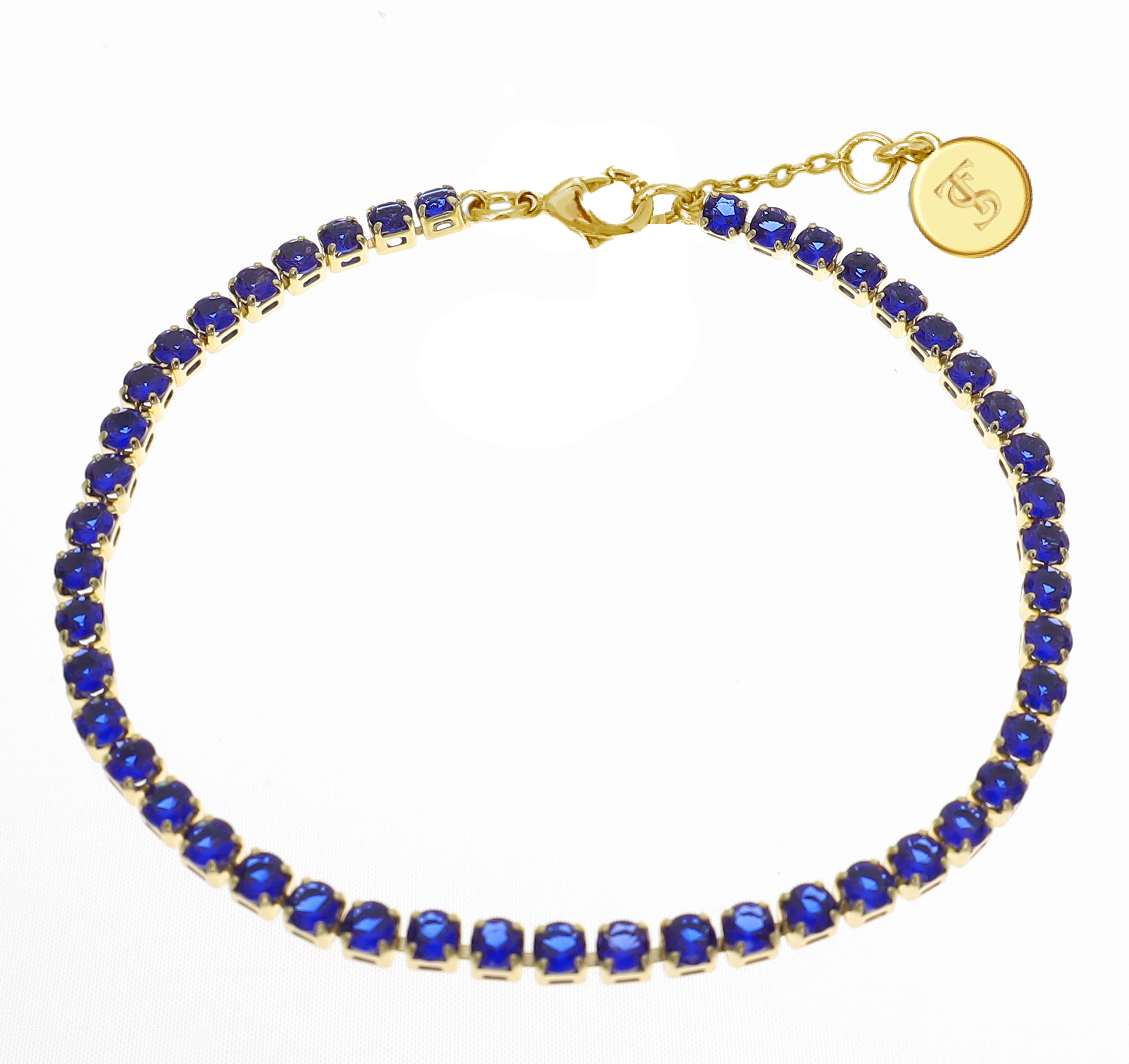 Elevate your look with our Bianca Genuine  Goldtone Tennis Bracelet. Crafted with elegant jade and sparkling sapphire CZ stones, it exudes sophistication and grace. Perfect for any occasion, this timeless piece adds a touch of luxury to your wardrobe.