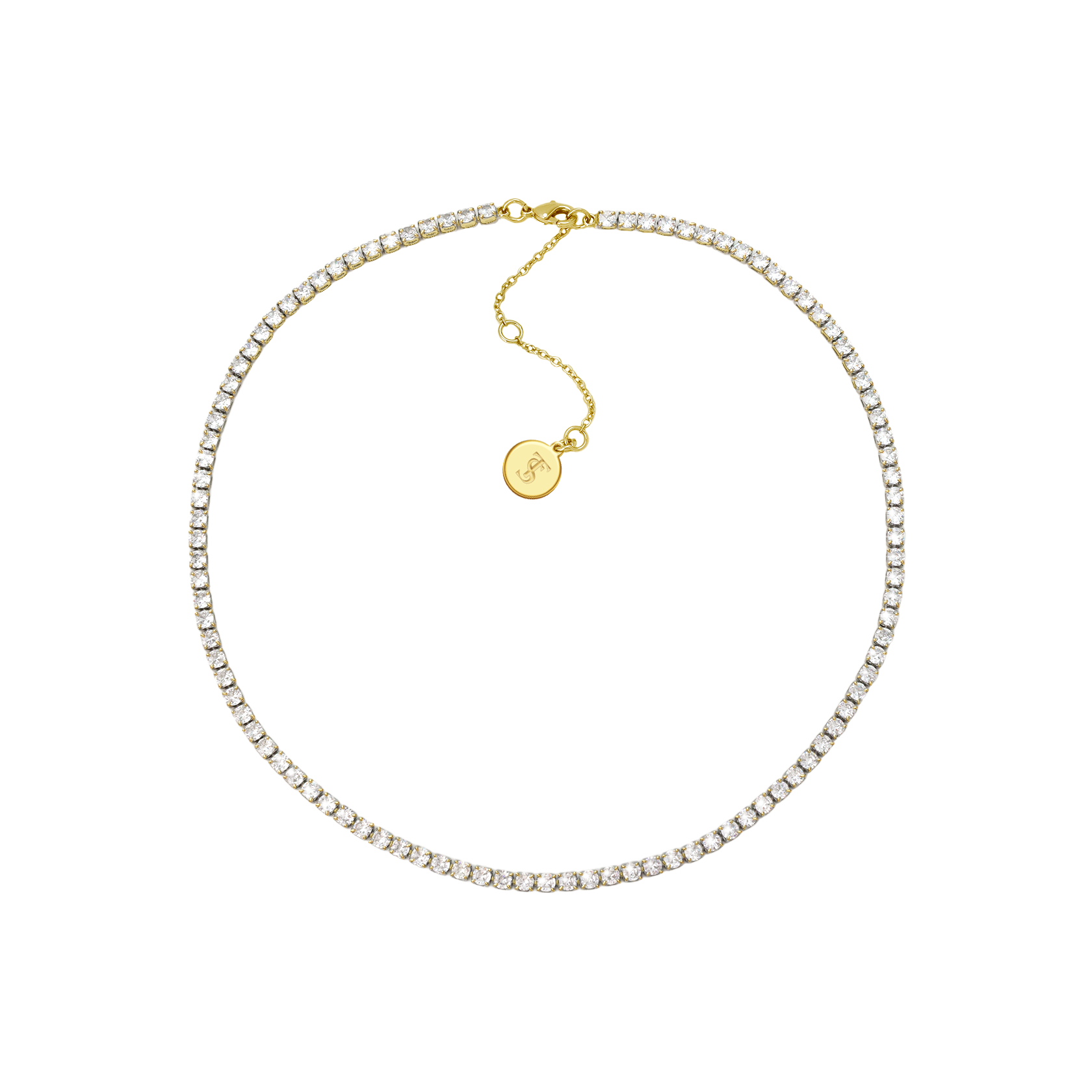Genuine CZ 14.25" 3mm Goldtone Tennis Necklace