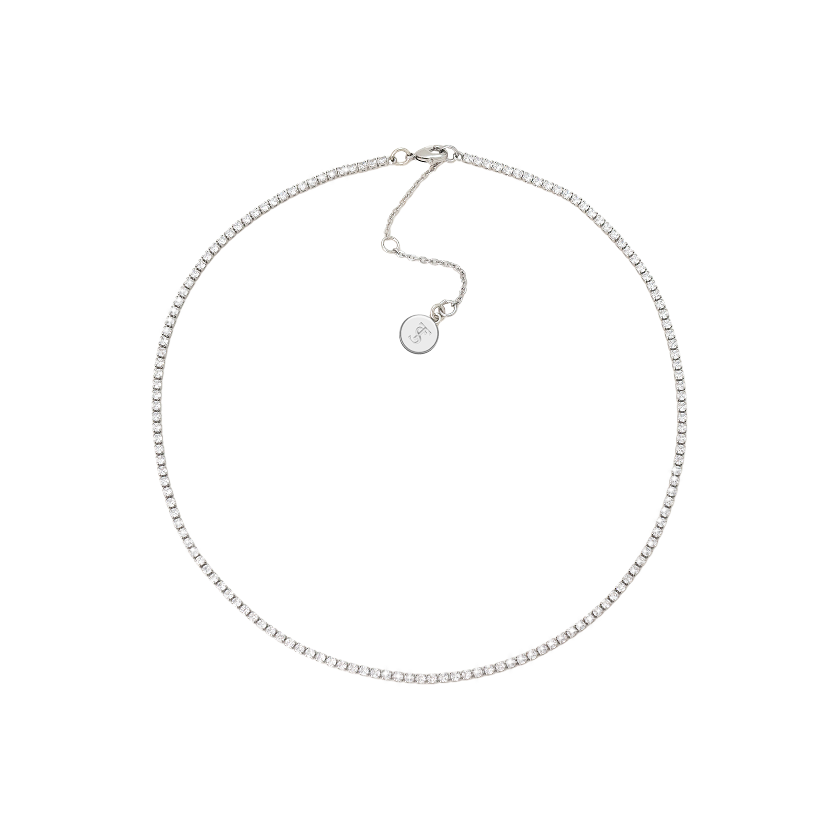 Genuine CZ 14.25" 2mm Silvertone Tennis Necklace