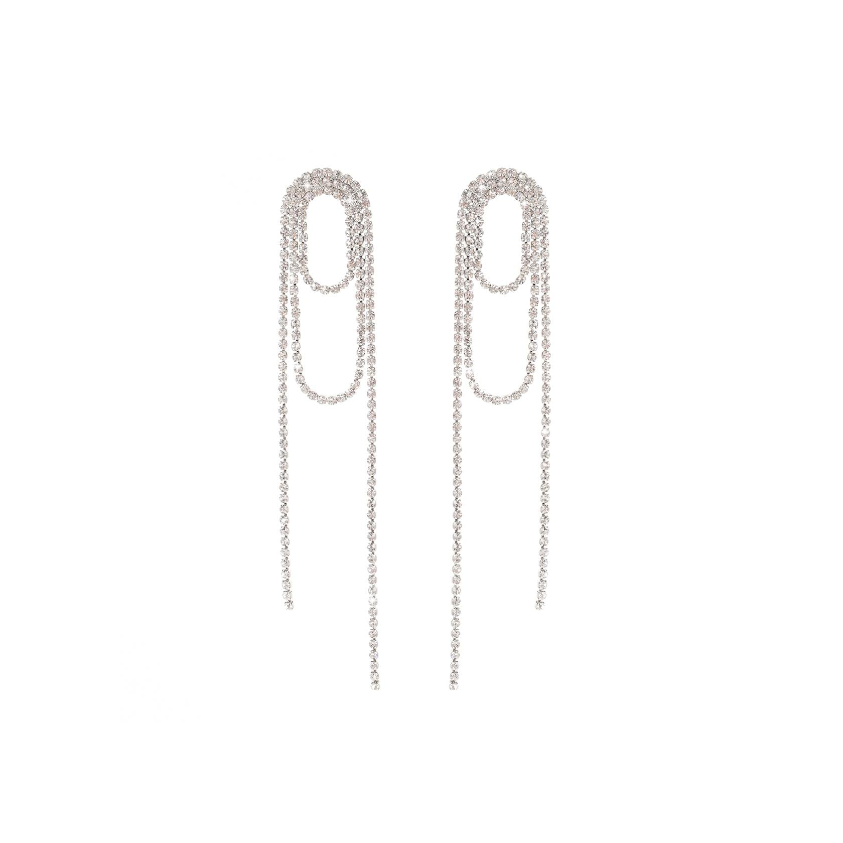 4.75" Super Dense Silver Crystal Loop Earrings
