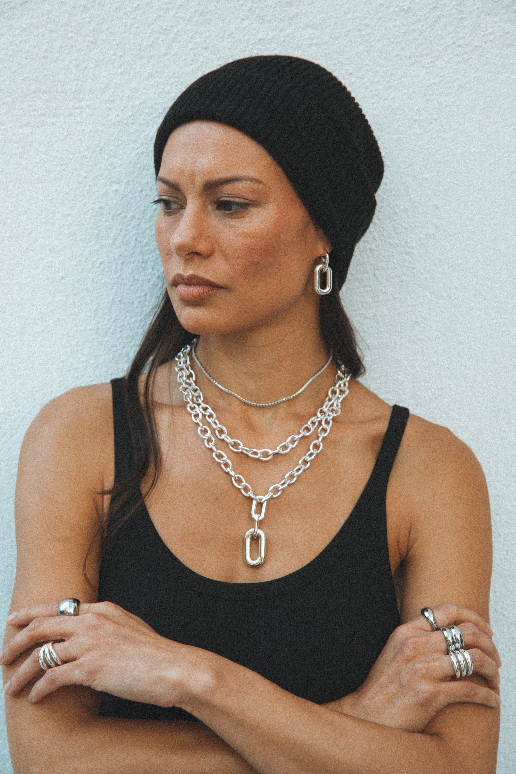 Elevate your style with our luxurious Felicity Silver Drop Link Earrings. This stunning accessory features delicate drop links for a timeless and elegant look.