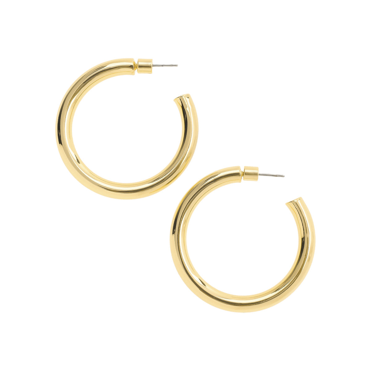 Elevate your style with the elegant and inspiring Tessa Goldtone Hoop Earrings. These stunning earrings highlight the timeless beauty of gold, making them the perfect accessory for any occasion. At 1.5", they are just the right size to add a touch of glamour to any outfit.